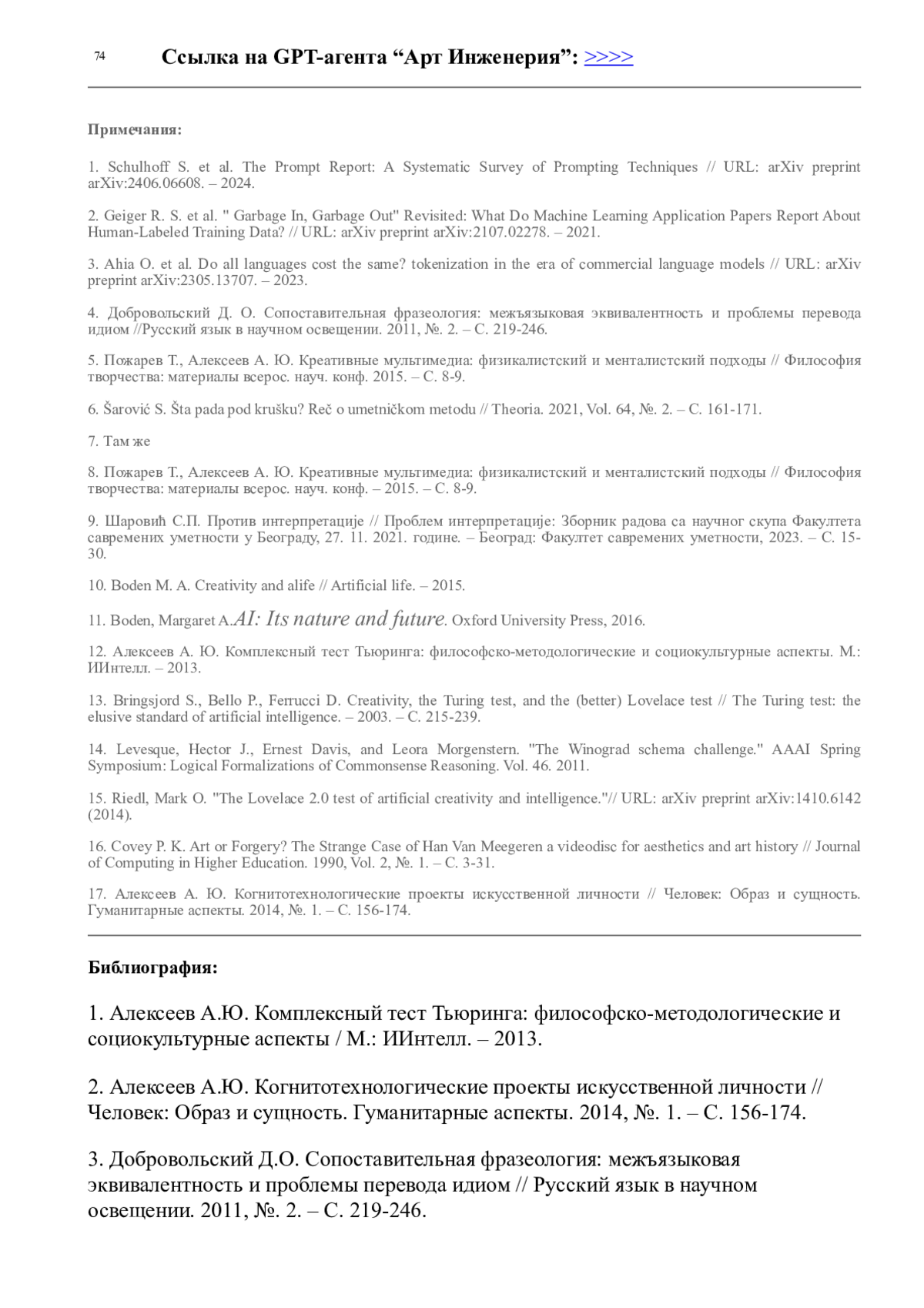 1. Алексеев А.Ю. Комплексный тест Тьюринга: философско-методологические и социокультурные аспекты / М.: ИИнтелл. - 2013.