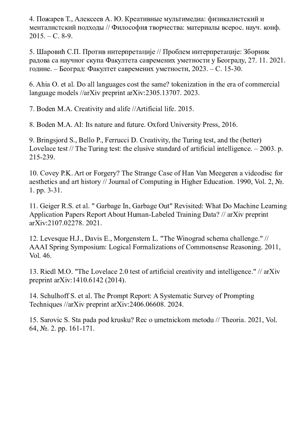 15. Sarovic S. Sta pada pod krusku? Rec o umetnickom metodu // Theoria. 2021, Vol. 64, №. 2. pp. 161-171.
