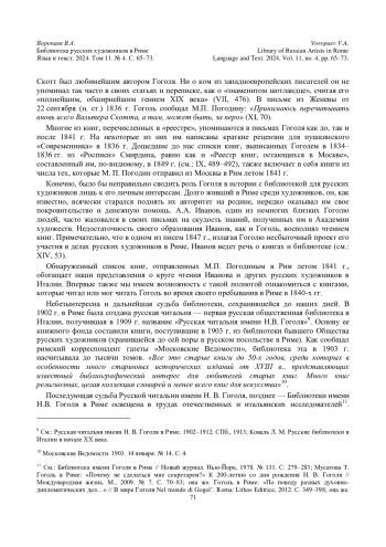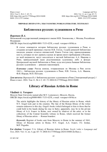 В статье освещается история библиотеки русских художников в Риме, в создании которой принимал участие Н. В. Гоголь. Судьба римской библиотеки писателя доныне остается неизвестной. Книги Гоголя (ему принадлежавшие или те, которые он мог держать в руках во время своего пребывания в Италии), по всей видимости, могут находиться в частной библиотеке А. А. Иванова в Риме, принадлежащей ныне родственникам художника; либо в фондах Центральной научной библиотеки в Риме, куда поступила бывшая библиотека русских художников - римских пансионеров.