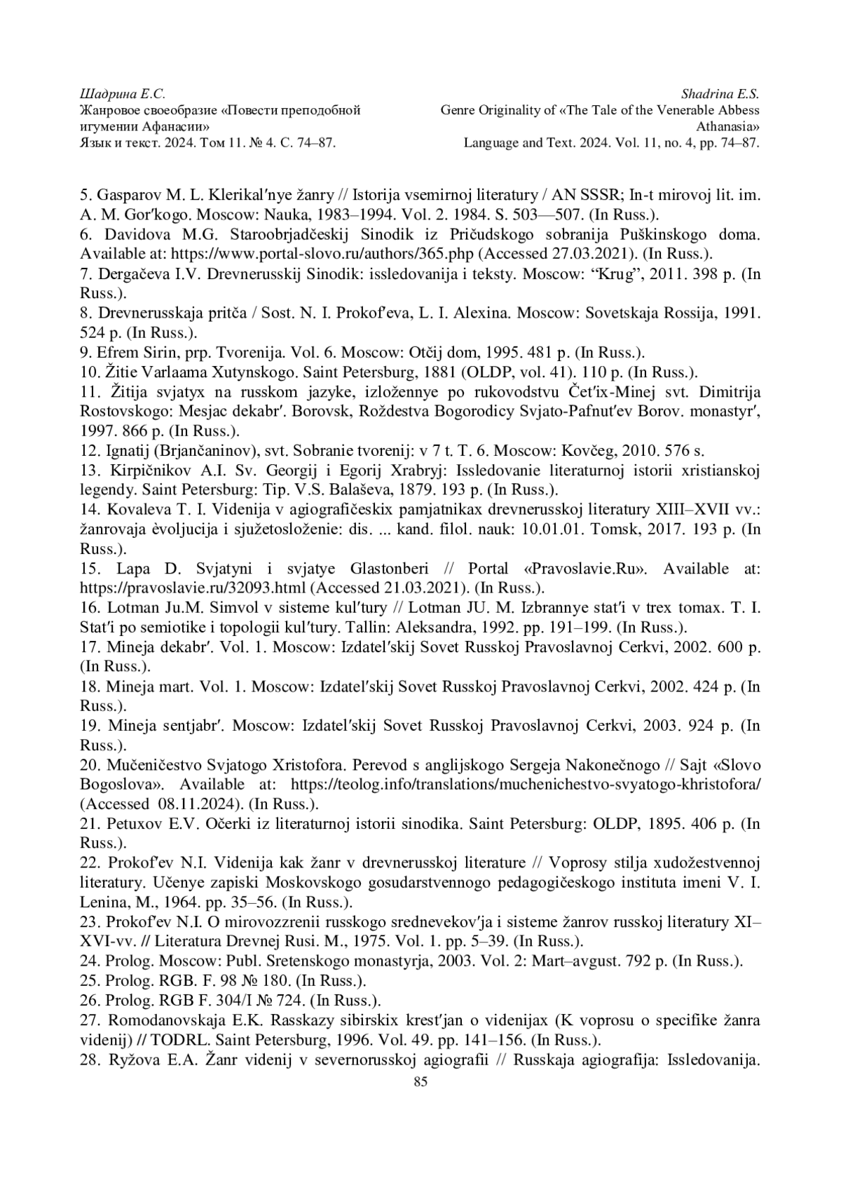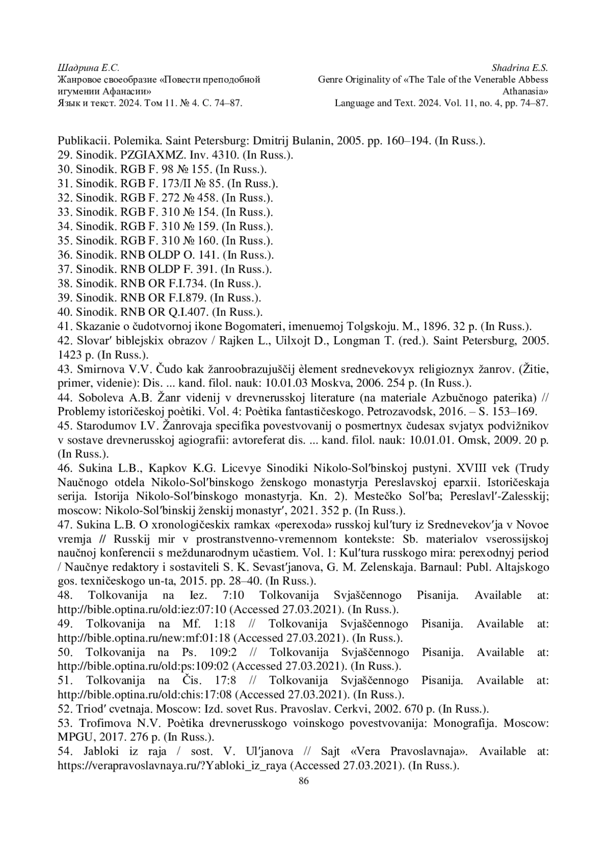 28. Рыжова Е.А. Жанр видений в севернорусской агиографии // Русская агиография: Исследования. Публикации. Полемика. СПб.: Дмитрий Буланин, 2005. С. 160-194.