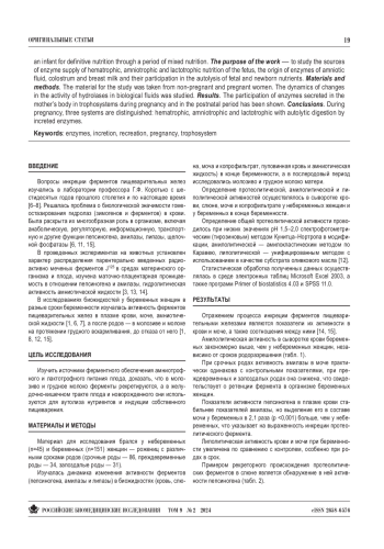 Введение. Вопросы инкреции ферментов пищеварительных желез изучались с шестидесятых годов прошлого столетия и по настоящее время. Ферменты индуцируют функциональную активность секреторных желез и подготавливают пищеварительный тракт грудного ребенка к дефинитивному питанию через период смешанного питания. Цель исследования — изучить источники ферментного обеспечения гематрофного, амниотрофного и лактотрофного питания плода, происхождение ферментов амниотической жидкости, молозива и грудного молока и их участие в аутолизе нутриентов плода и новорожденного. Материалы и методы. Материал для исследования брался у небеременных и беременных женщин. Изучалась динамика изменения активности гидролаз в биологических жидкостях. Результаты. Показано участие инкретируемых в организме матери ферментов в трофосистемах при беременности и в постнатальный период. Выводы. Во время беременности выделяются три системы: гематрофная, амниотрофная и лактотрофная с аутолитическим пищеварением инкретируемыми энзимами.