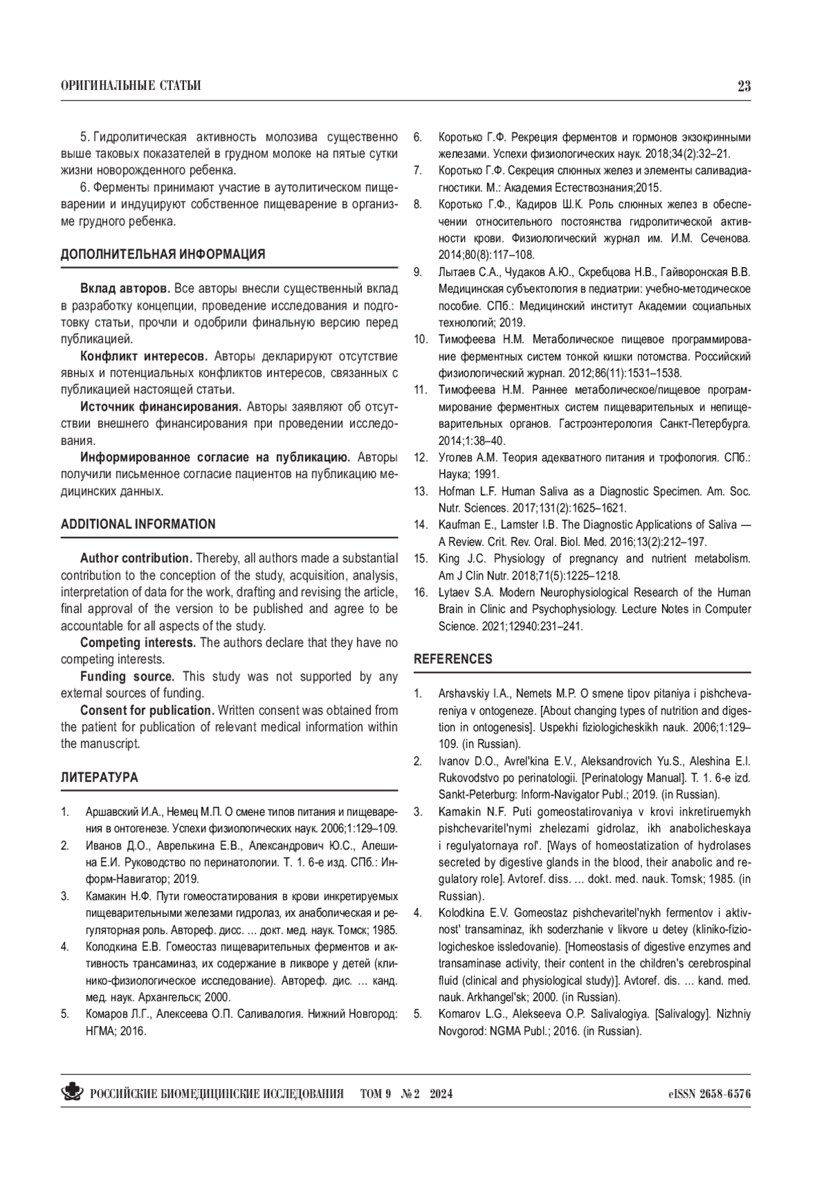 1. Аршавский И.А., Немец М.П. О смене типов питания и пищеварения в онтогенезе. Успехи физиологических наук. 2006;1:129–109.