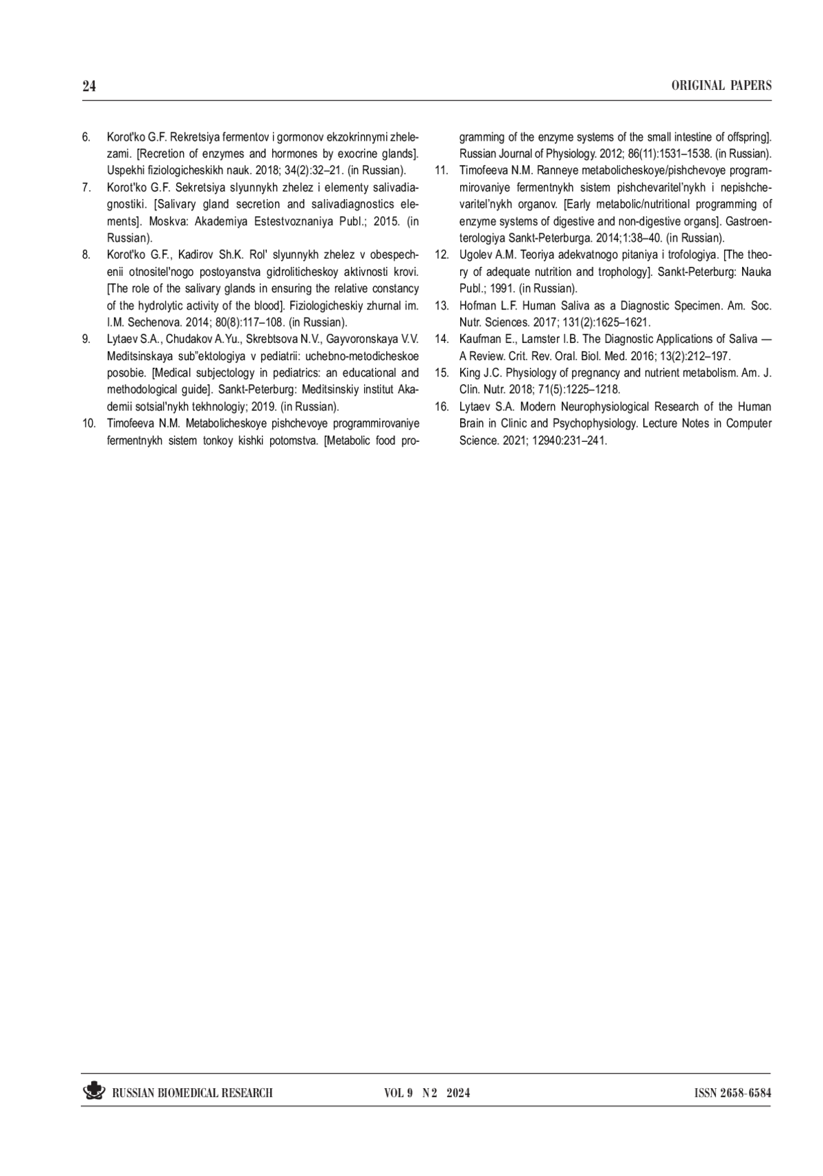 6. Коротько Г.Ф. Рекреция ферментов и гормонов экзокринными железами. Успехи физиологических наук. 2018;34(2):32–21.