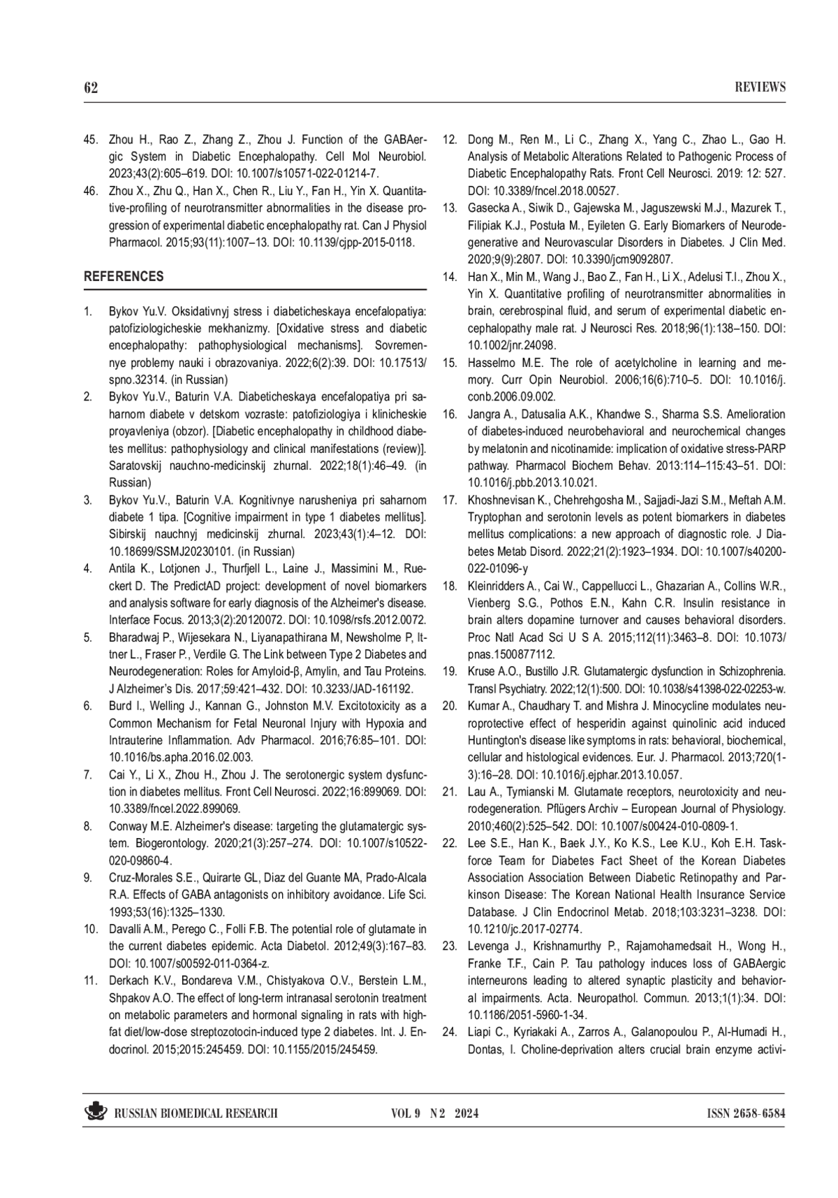 46. Zhou X., Zhu Q., Han X., Chen R., Liu Y., Fan H., Yin X. Quantitative- profiling of neurotransmitter abnormalities in the disease progression of experimental diabetic encephalopathy rat. Can J Physiol Pharmacol. 2015;93(11):1007–13. DOI: 10.1139/cjpp-2015-0118.