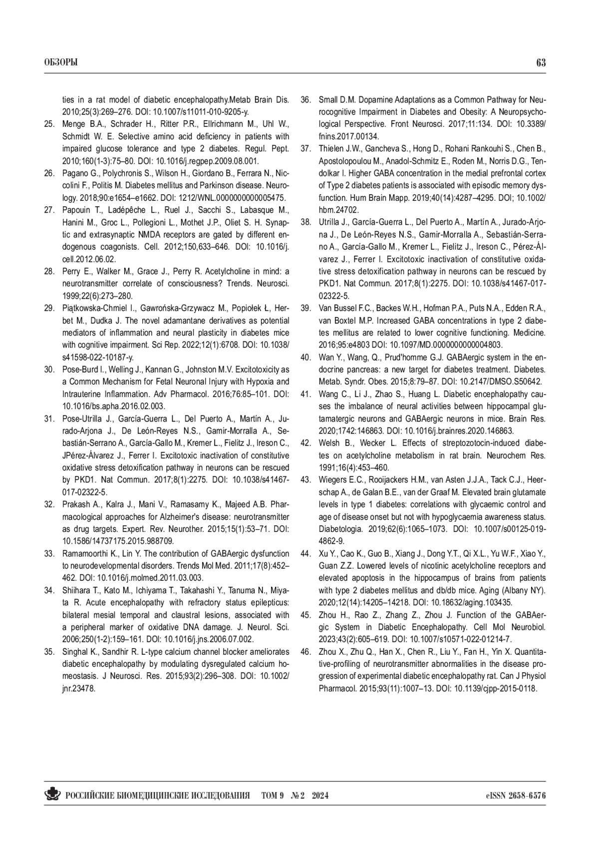 45. Zhou H., Rao Z., Zhang Z., Zhou J. Function of the GABAergic System in Diabetic Encephalopathy. Cell Mol Neurobiol. 2023;43(2):605–619. DOI: 10.1007/s10571-022-01214-7.