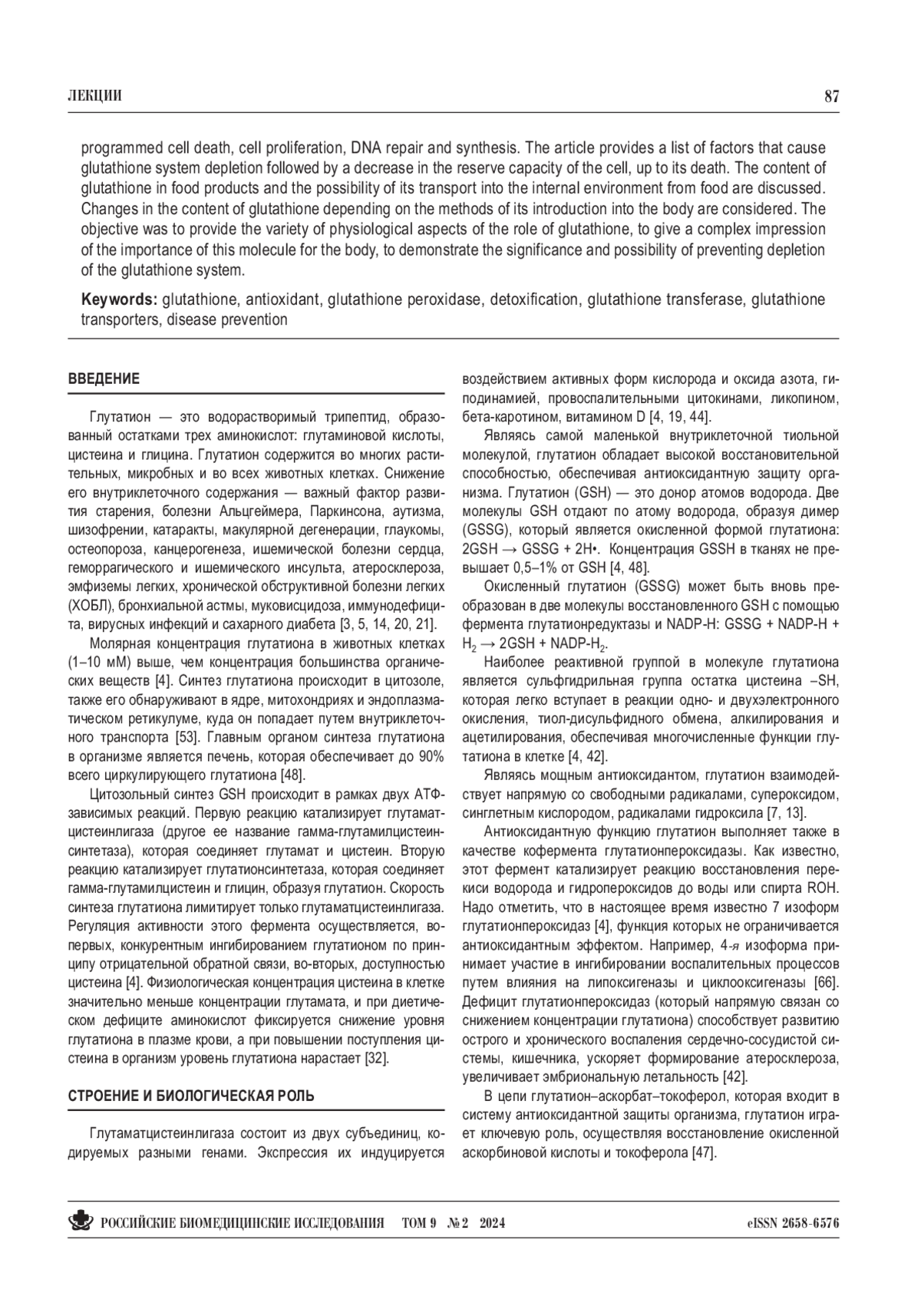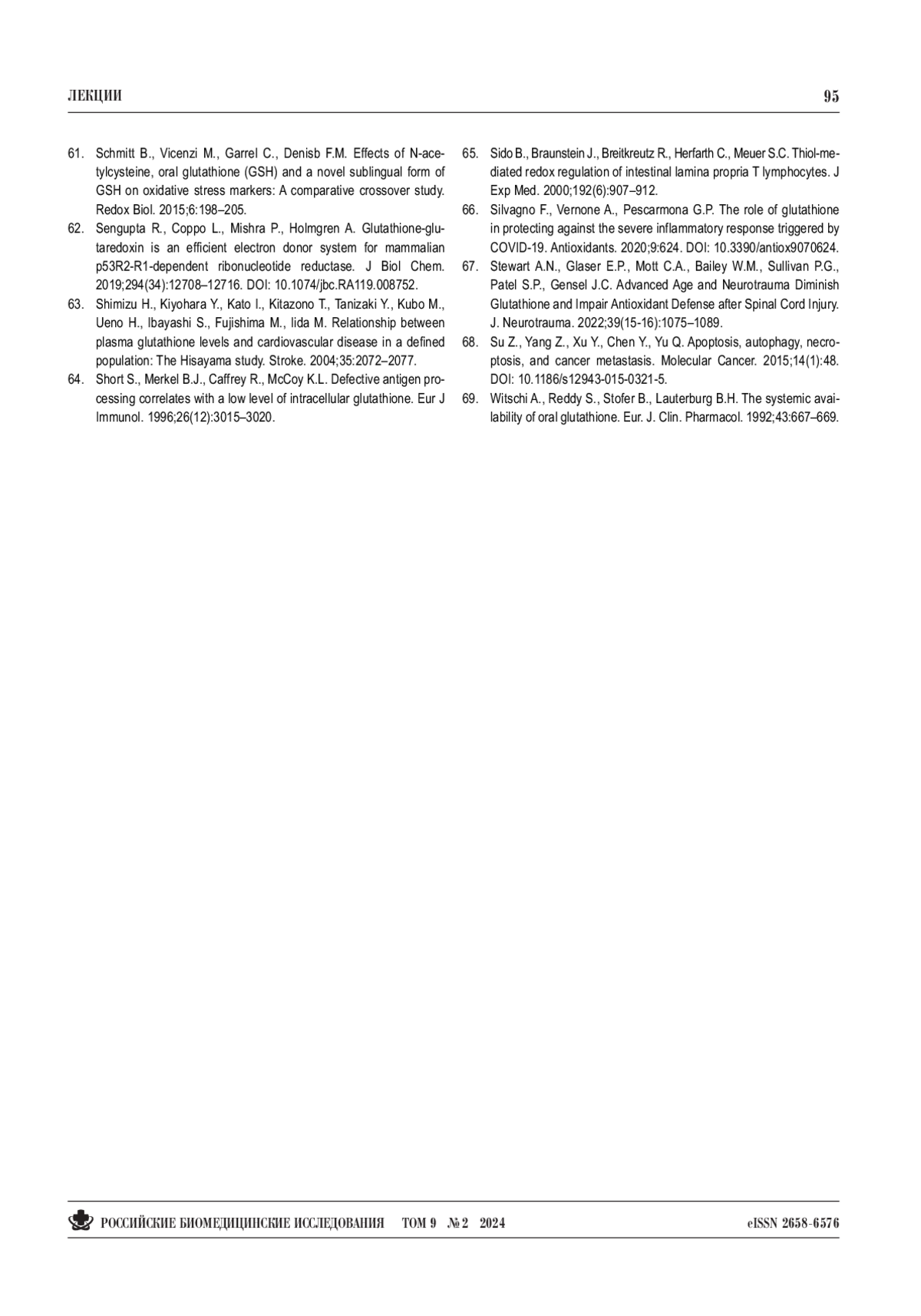 42. Labarrere C.A., Kassab G.S. Glutathione: A Samsonian life-sustainingsmall molecule that protects against oxidative stress, ageing and damaging inflammation. Front Nutr. 2022;9:1007816. DOI: 10.3389/fnut.2022.1007816.