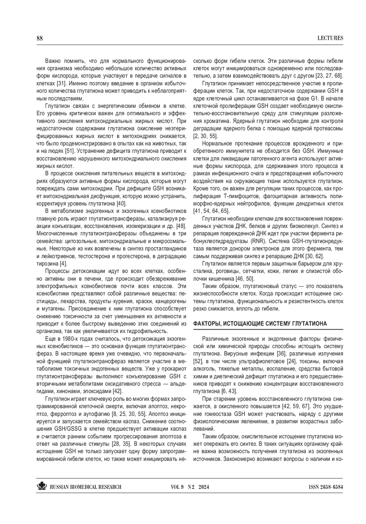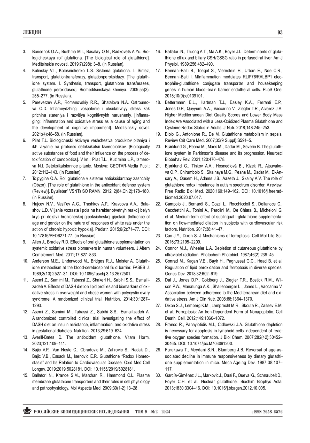 3. Борисенок О.А., Бушма М.И., Басалай О.Н., Радковец А.Ю. Биологическая роль глутатиона. Медицинские новости. 2019;7(298):3–8.