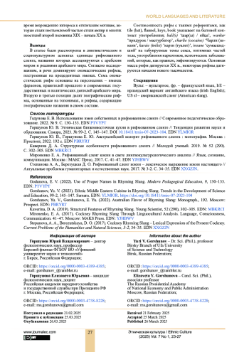 Gorshunov, Yu. V. (2023). Ethnic Middle Eastern Cuisine in Rhyming Slang. Trends in the Development of Science and Education, 99-2, 145-147. Samara. DOI: 10.18411/trnio-07-2023-104 EDN: YLMIOR