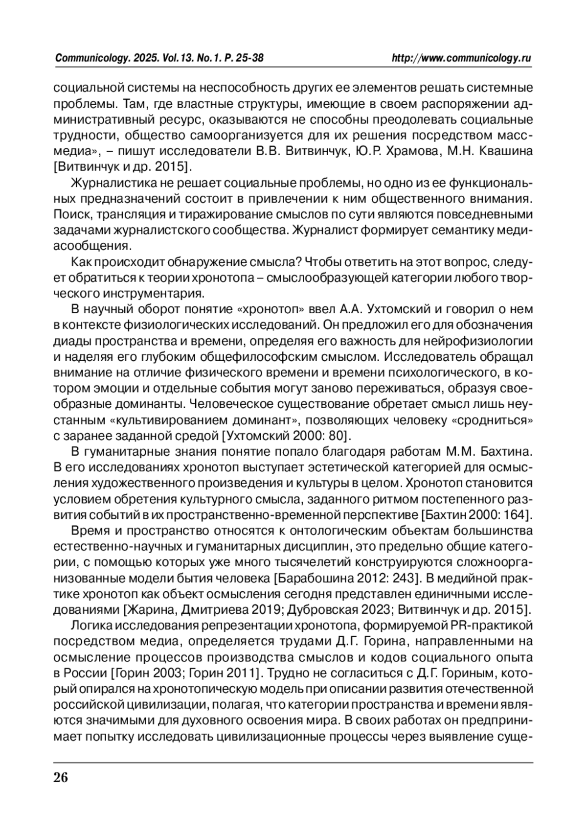 3. Витвинчук В.В., Храмова Ю.Р., Квашина М.Н. (2015). Хронотоп катастрофы в современном медийном дискурсе // Современные научные исследования и инновации. № 12. С. 924-928.