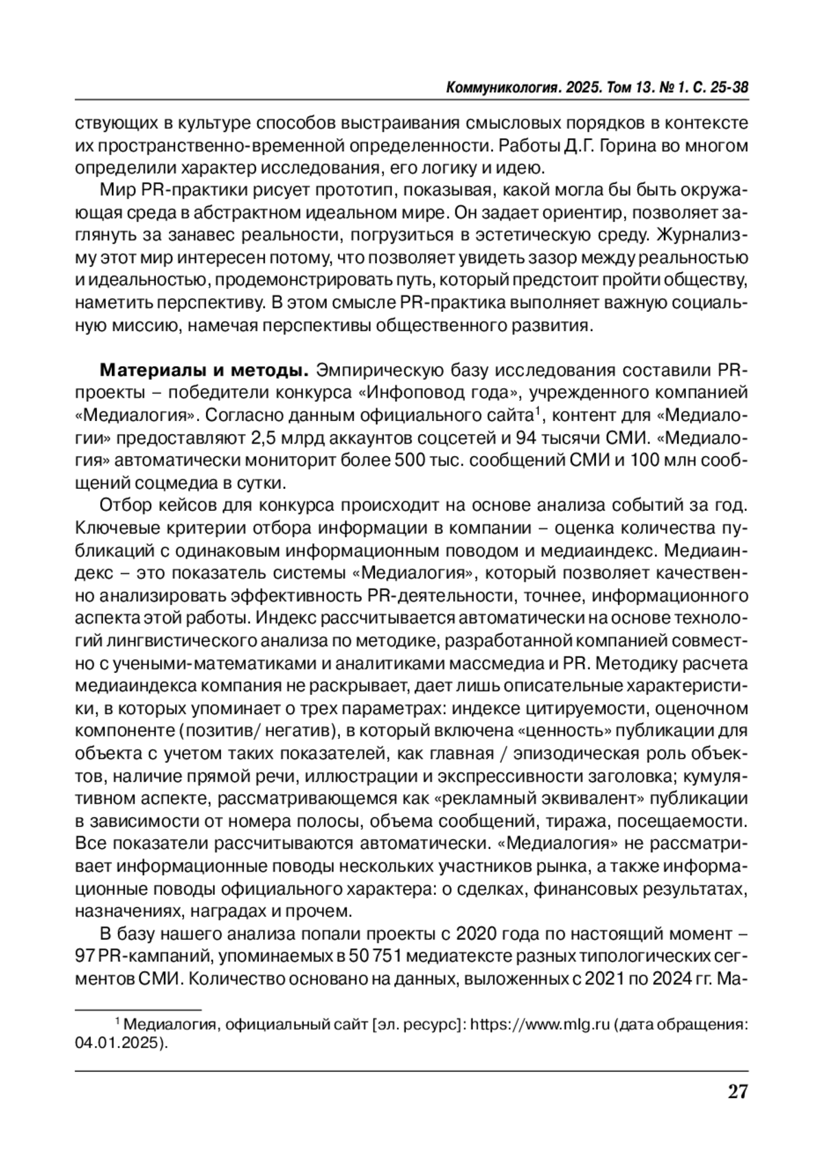 5. Горин Д.Г. (2011). Производство смысла и коды социального опыта в России. М.: ЛИБРОКОМ.
