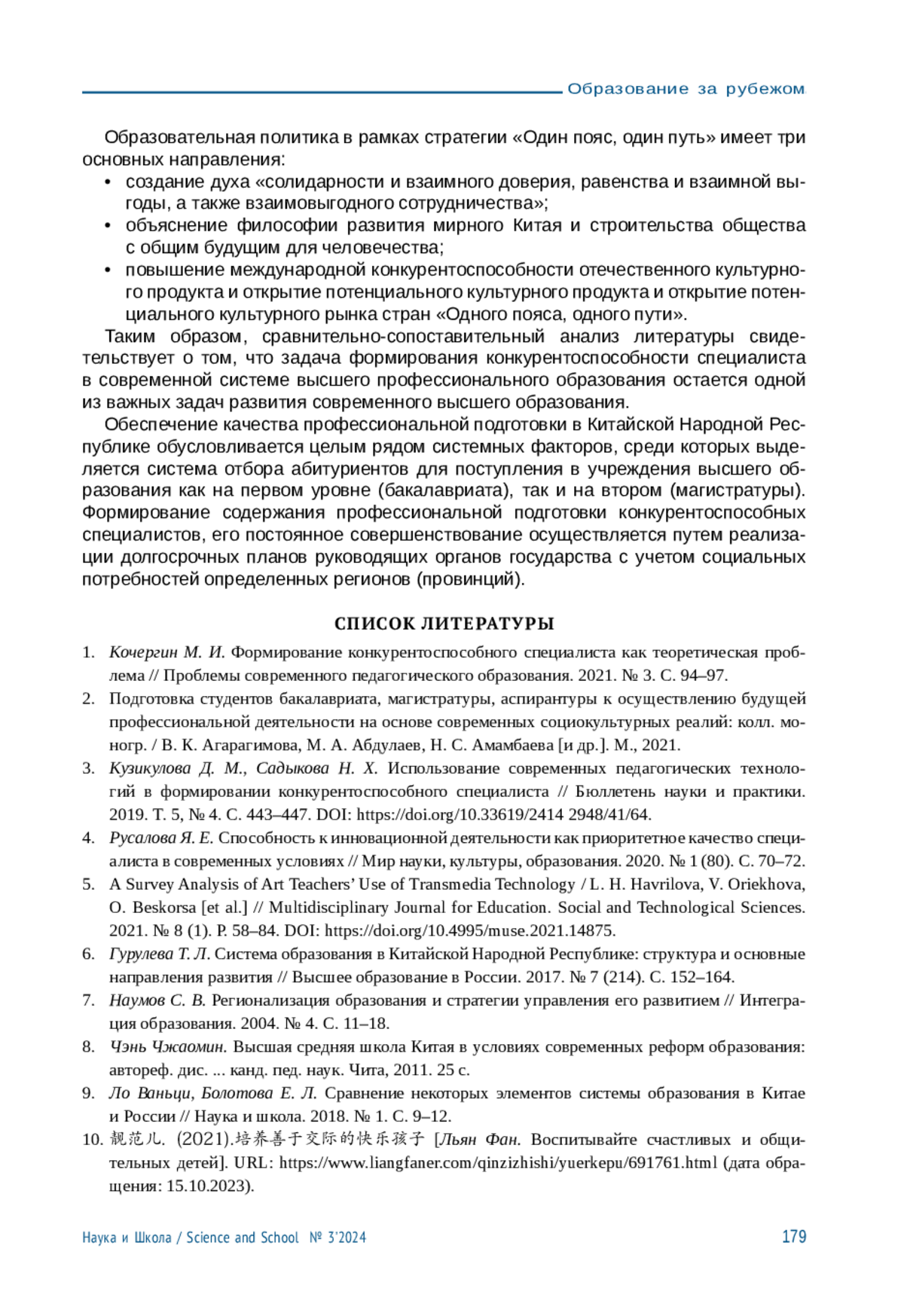 6. Гурулева Т. Л. Система образования в Китайской Народной Республике: структура и основные направления развития // Высшее образование в России. 2017. № 7 (214). С. 152-164. EDN: ZAYFQJ