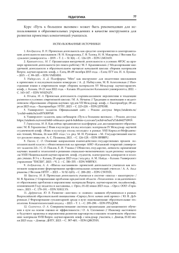 6. Университет талантов, цикл вебинаров «Путь к большим вызовам». – Режим доступа: https://utalents.ru/event/tsikl-vebinarov-put-k-bolshim-vyzovam?ysclid=m5un7a7zbd442710919.