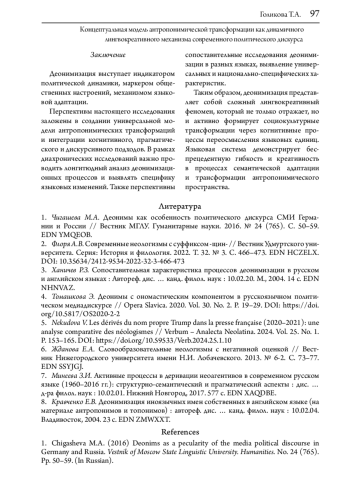 4. Томашкова Э. Деонимы с ономастическим компонентом в русскоязычном политическом медиадискурсе // Opera Slavica. 2020. Vol. 30. No. 2. P. 19–29. DOI: htt ps://doi. org/10.5817/OS2020-2-2