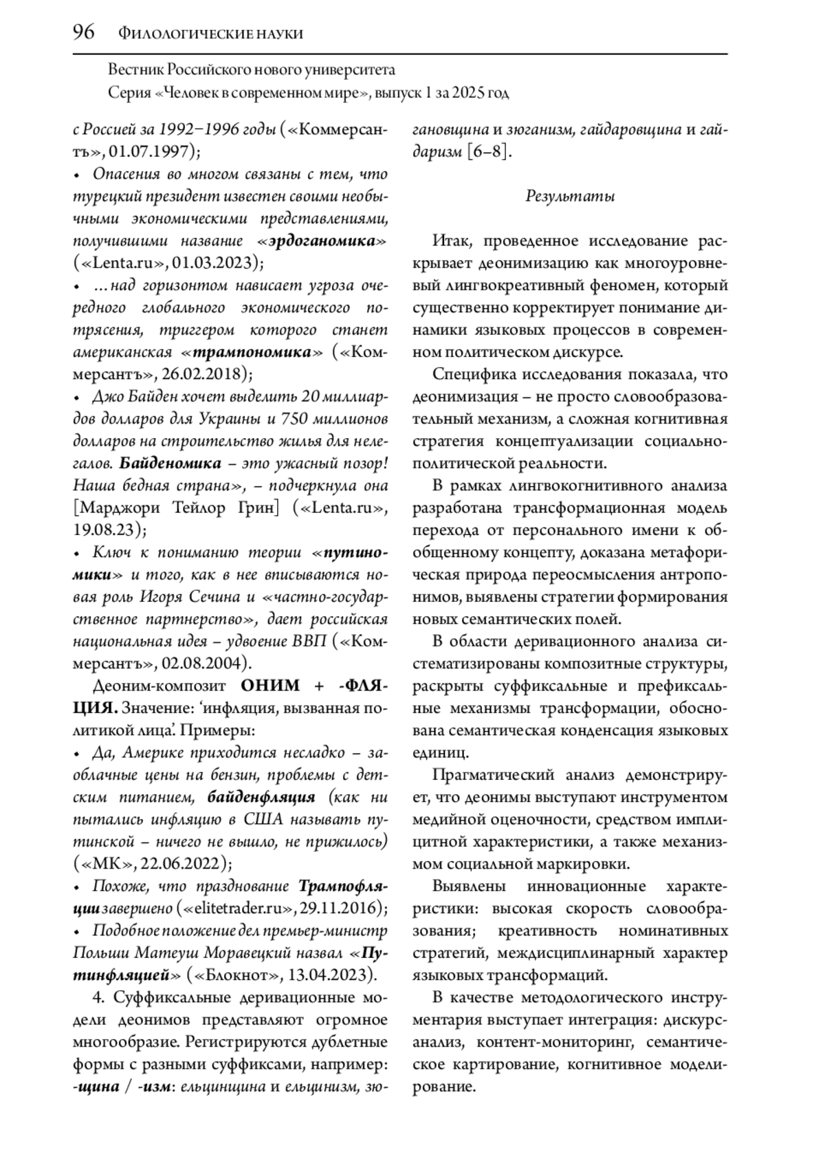 1. Чигашева М.А. Деонимы как особенность политического дискурса СМИ Германии и России // Вестник МГЛУ. Гуманитарные науки. 2016. № 24 (765). С. 50–59. EDN YMQEOB.