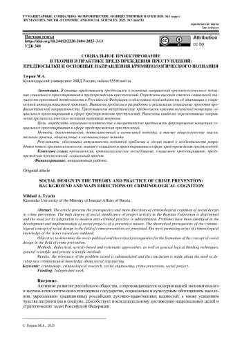 В статье представлены предпосылки и основные направления криминологического познания социального проектирования в предупреждении преступлений. Определена высокая степень социальной значимости проектной деятельности в Российской Федерации и обоснована необходимость её адаптации к современной антикриминальной практике. Выявлены проблемы в разработке и реализации социальных проектов профилактической направленности. Представлены теоретические предпосылки криминологической концепции социального проектирования в сфере предупреждения преступлений. Намечены наиболее перспективные направления криминологического познания поднятых вопросов.