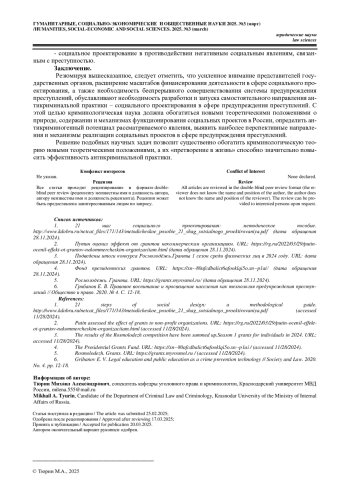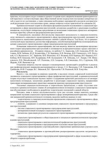 Криминологическая теория не обогащена фундаментальными положениями о социальном проектировании в сфере предупреждения преступлений, механизмах разработки и реализации подобных инициатив, отсутствуют конкретные предложения по включению социальных проектов в антикриминальную практику субъектов предупреждения преступлений.