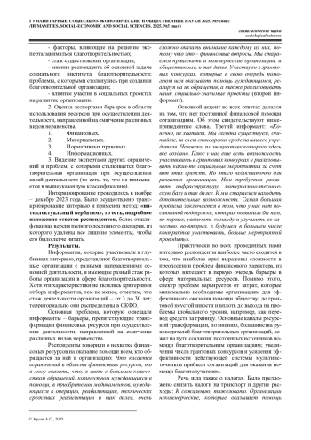 6. Кусов А.С. Трансформация ресурсов социального института благотворительности в оценке экспертов //Новые контуры социальной реальности: материалы Всероссийской научно-практической конференции (X Северо-Кавказские социологические чтения. Ставрополь: Изд-во СКФУ, 2021. – С. 43-47.