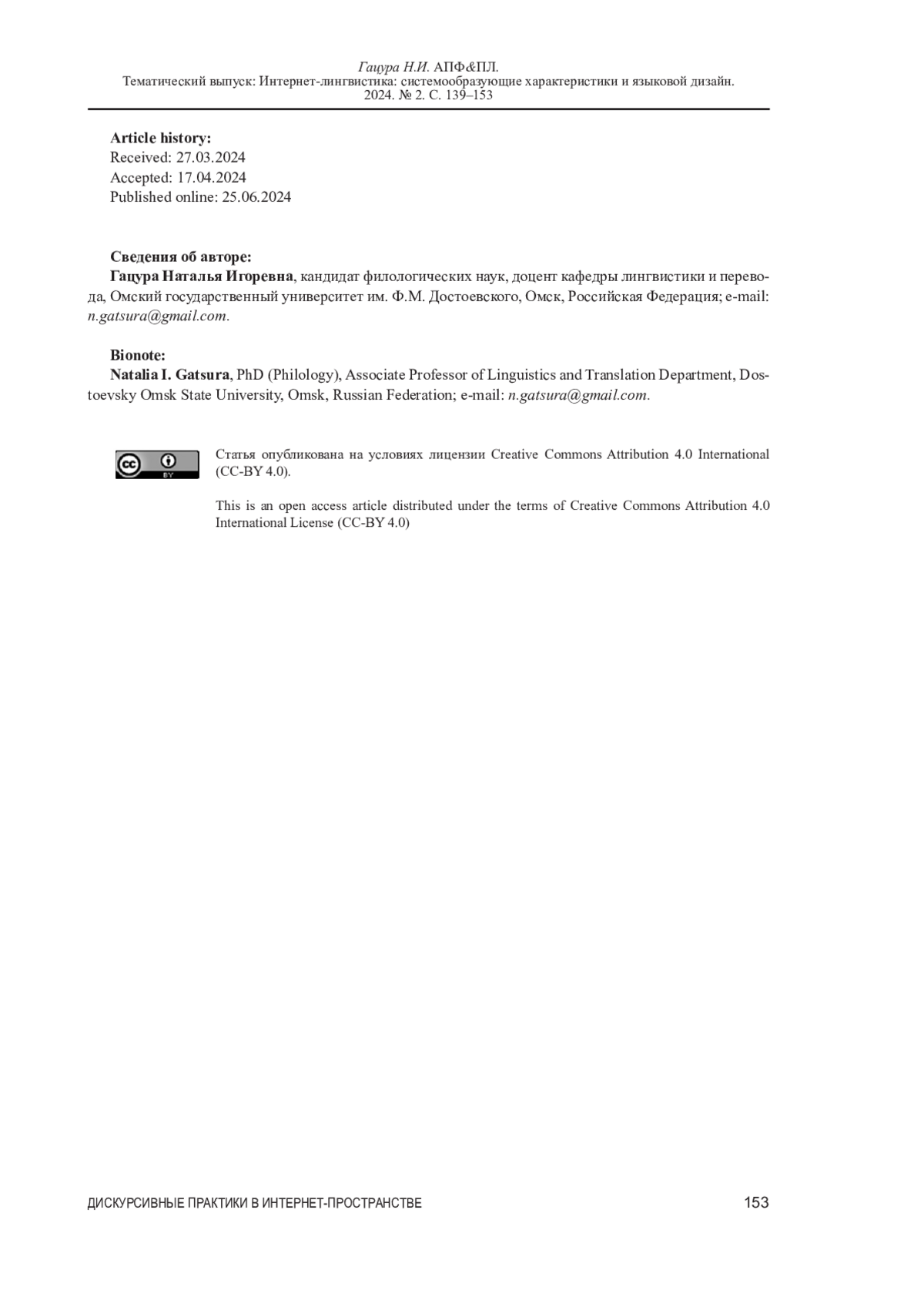 В статье используются методы дискурсивного, прагмастилистического и контекстуального анализа.