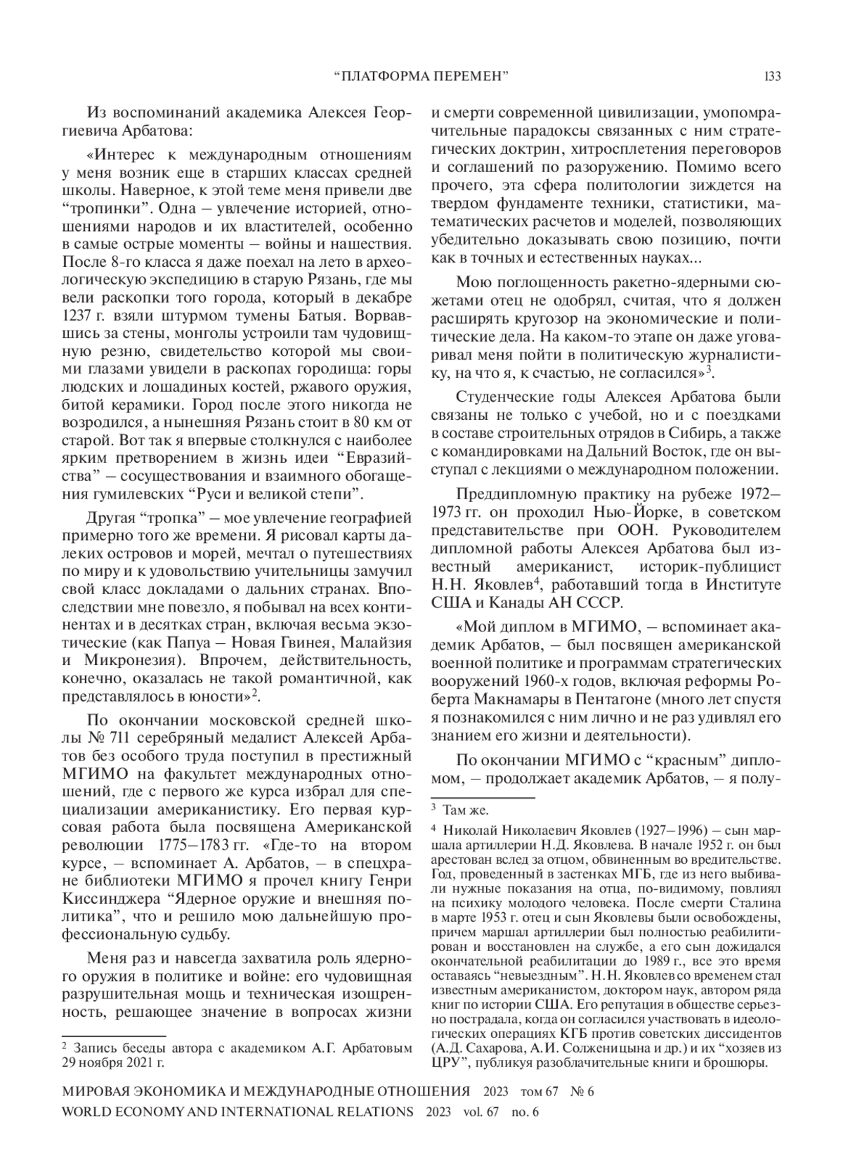 1. Арбатов А.Г. Стратегическая стабильность - оружие и дипломатия. Москва, “Весь мир”, 2021. 432 с. EDN: CEPJVU