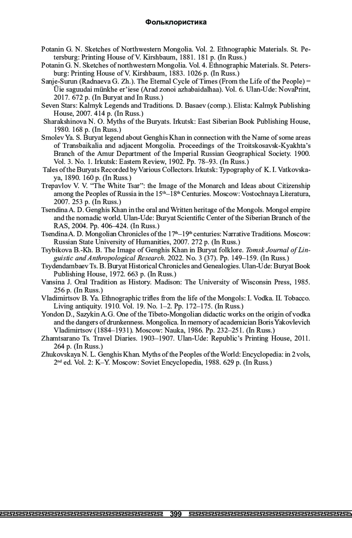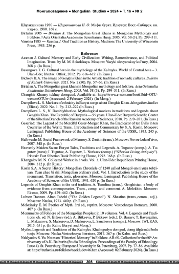 35. Birtalan 2005 ― Birtalan A. The Mongolian Great Khans in Mongolian Mythology and Folklore // Acta Orientalia Academiae Scientiarum Hung. 2005. Vol. 58 (3). Pp. 299-311.