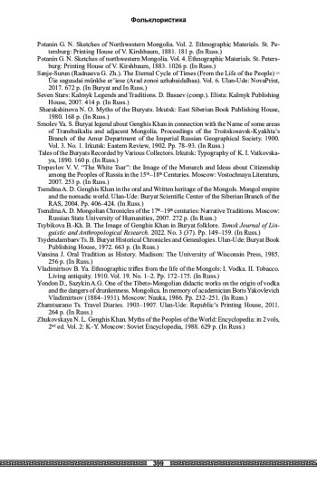 20. Потанин 1881 ― Потанин Г. Н. Очерки северо-западной Монголии. Вып. II. Материалы этнографические. СПб.: Тип. В. Киршбаума, 1881. 181 с.