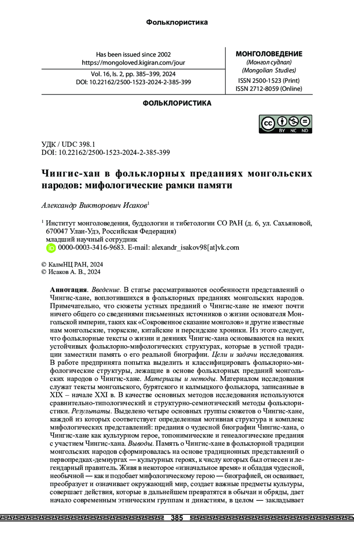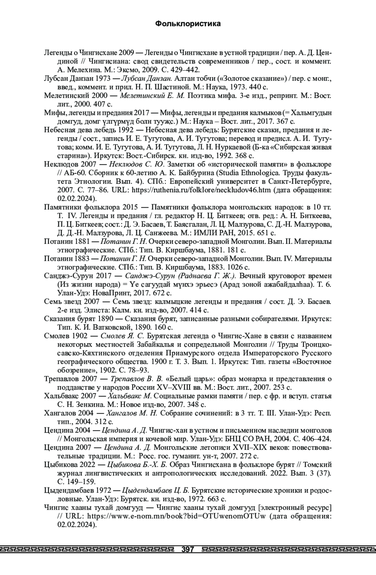 31. Цыбикова 2022 ― Цыбикова Б.-Х. Б. Образ Чингисхана в фольклоре бурят // Томский журнал лингвистических и антропологических исследований. 2022. Вып. 3 (37). С. 149-159.