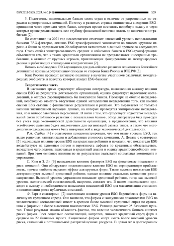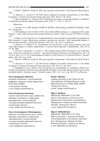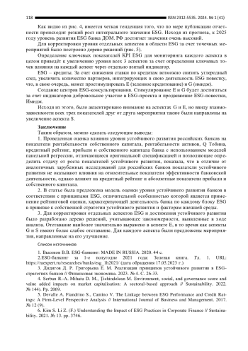 3. Дидигов Д. Р. Григорьева Е. М. Реализация принципов устойчивого развития в ESG-стратегиях банков // Финансовая экономика. 2023. № 4. С. 26-33. EDN: MBBGIT