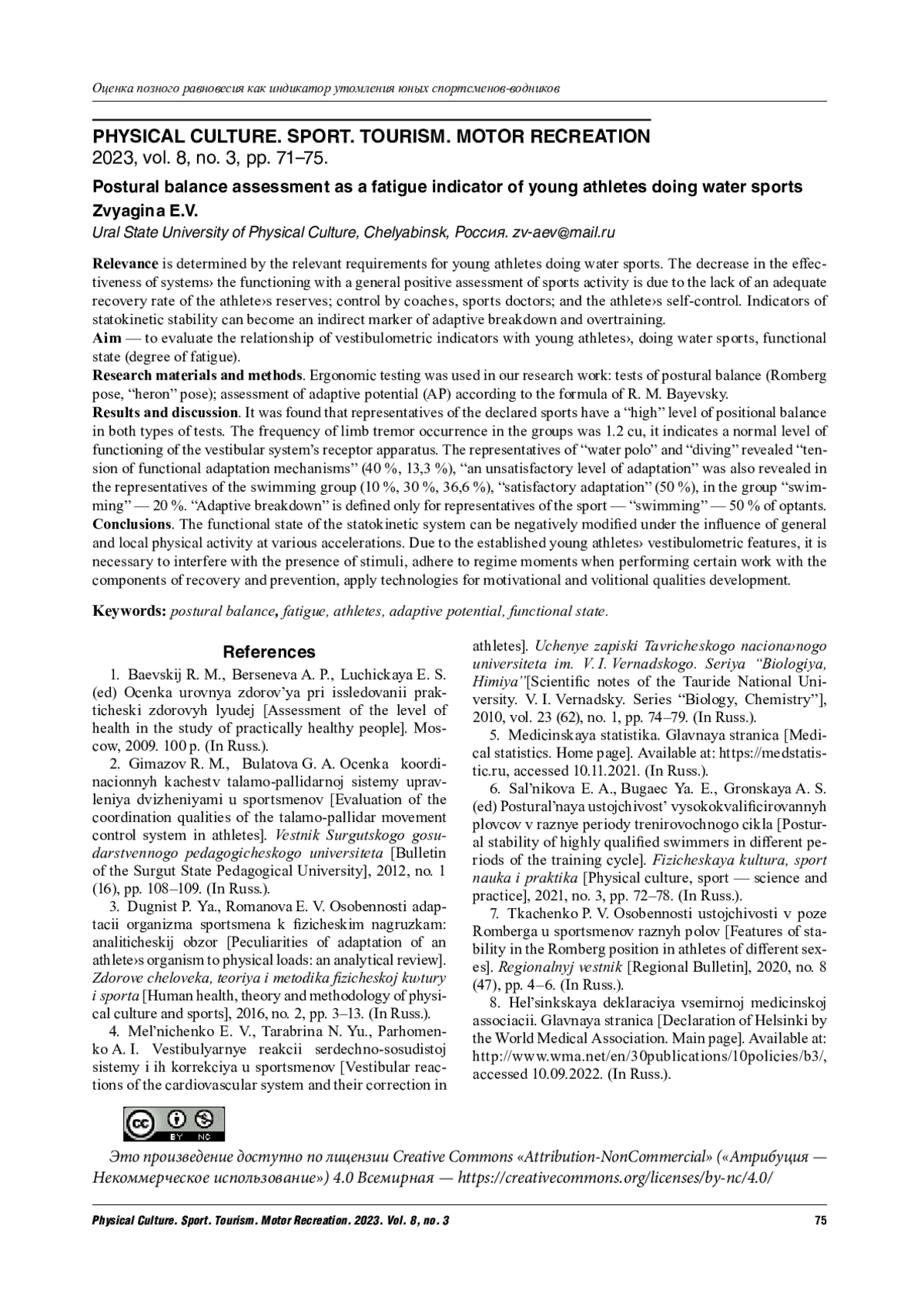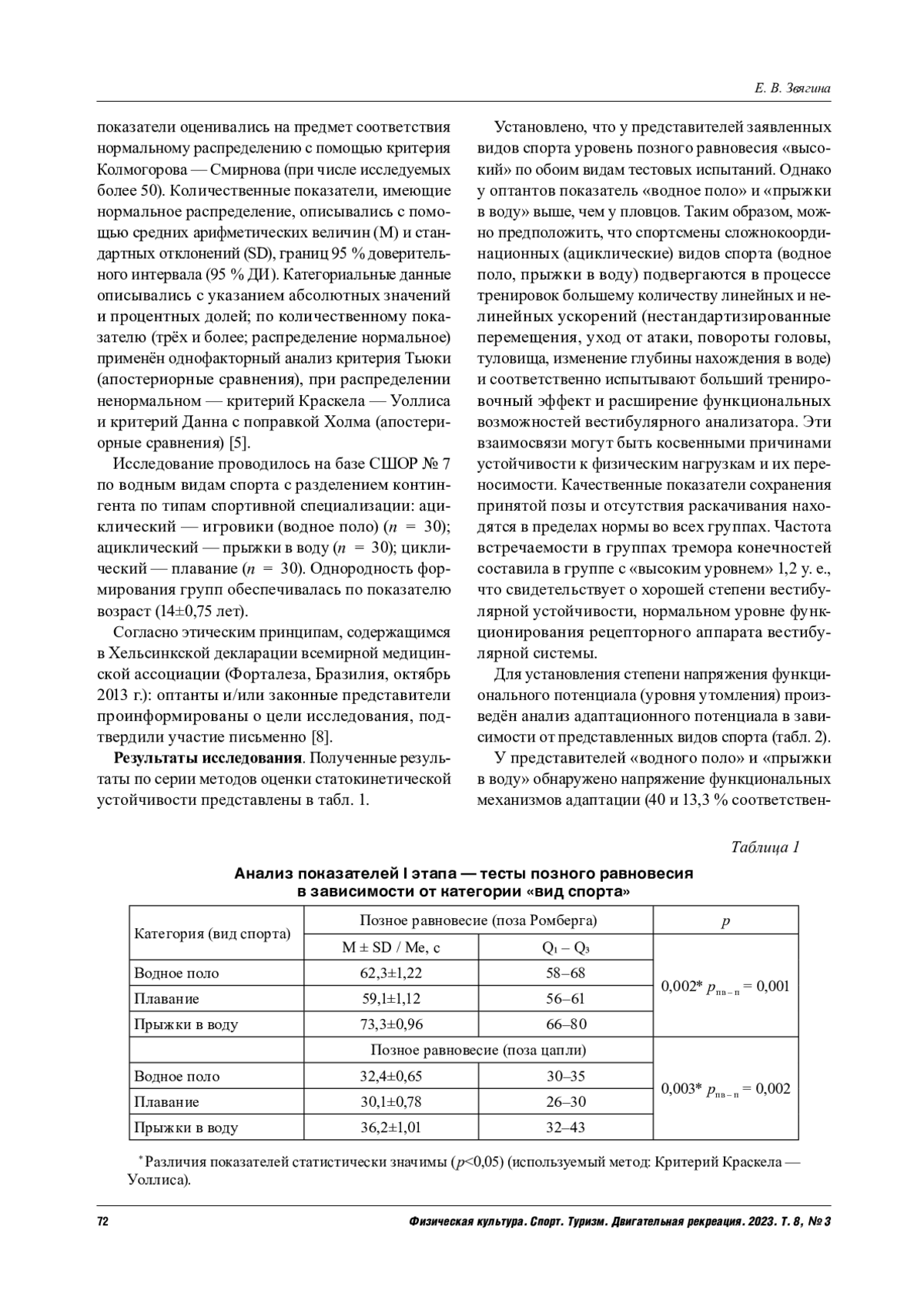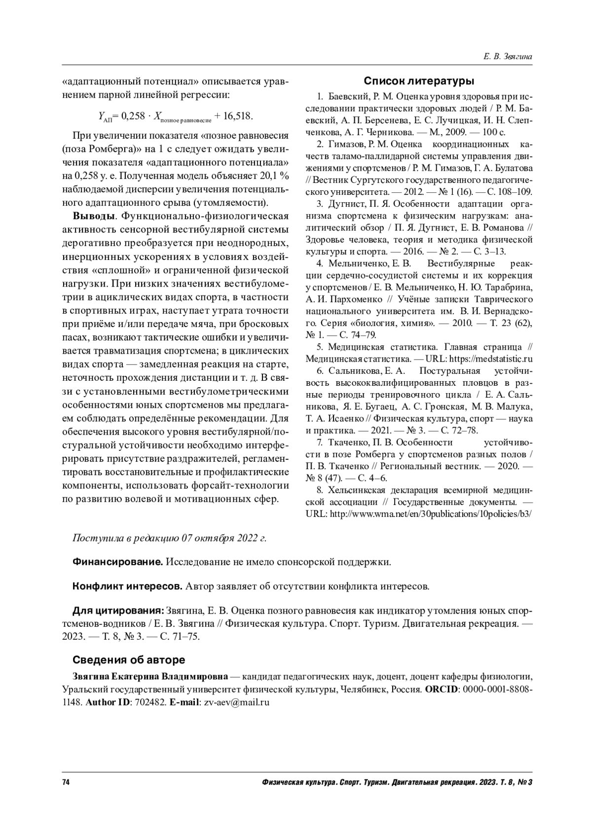 7. Ткаченко, П. В. Особенности устойчивости в позе Ромберга у спортсменов разных полов / П. В. Ткаченко // Региональный вестник. - 2020. - № 8 (47). - С. 4-6. EDN: GTAZPY