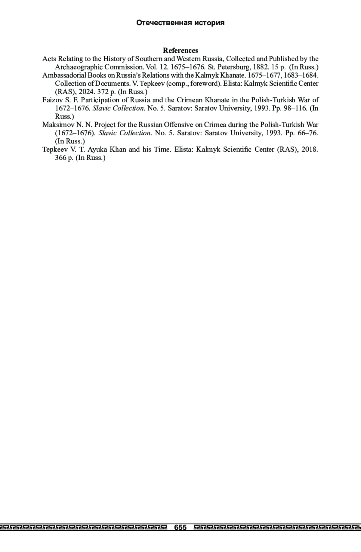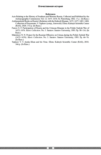 6. Фаизов 1993 - Фаизов С. Ф. Участие России и Крымского ханства в польско-турецкой войне 1672-1676 гг. // Славянский сборник. Вып. 5. Саратов: Саратовск. ун-т, 1993. С. 98-116.