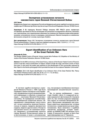 Статья: Экспертное установление личности неизвестного героя Великой Отечественной Войны (2025)