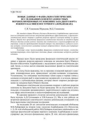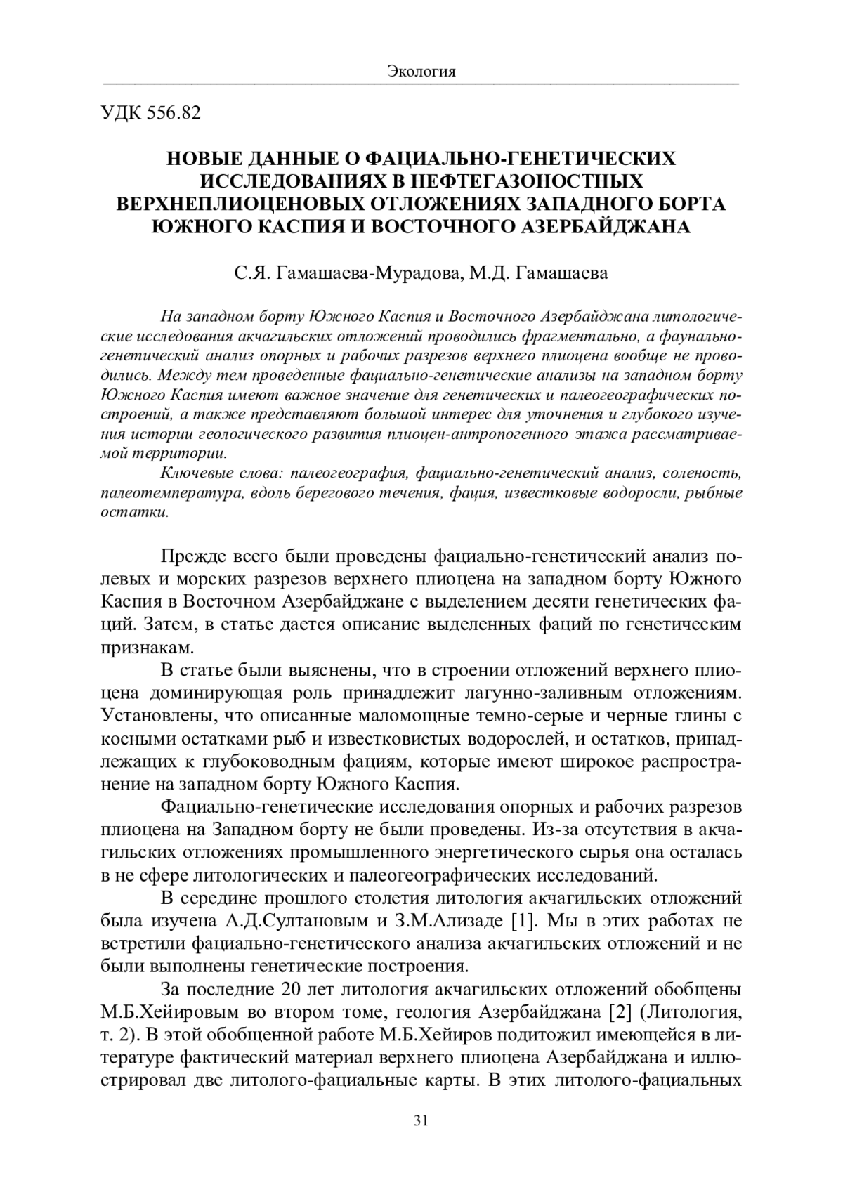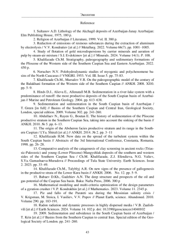 7. Халифазаде Ч.М., Мурсалов В.Р. О палеогеографической модели века балаханской свиты Западного борта Южного Каспия // АНХ. 2008. XI-10. C. 5-9.