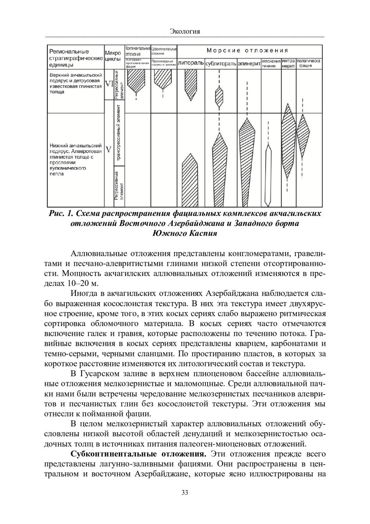 На западном борту Южного Каспия и Восточного Азербайджана литологические исследования акчагильских отложений проводились фрагментально, а фаунально-генетический анализ опорных и рабочих разрезов верхнего плиоцена вообще не проводились. Между тем проведенные фациально-генетические анализы на западном борту Южного Каспия имеют важное значение для генетических и палеогеографических построений, а также представляют большой интерес для уточнения и глубокого изучения истории геологического развития плиоцен-антропогенного этажа рассматриваемой территории.