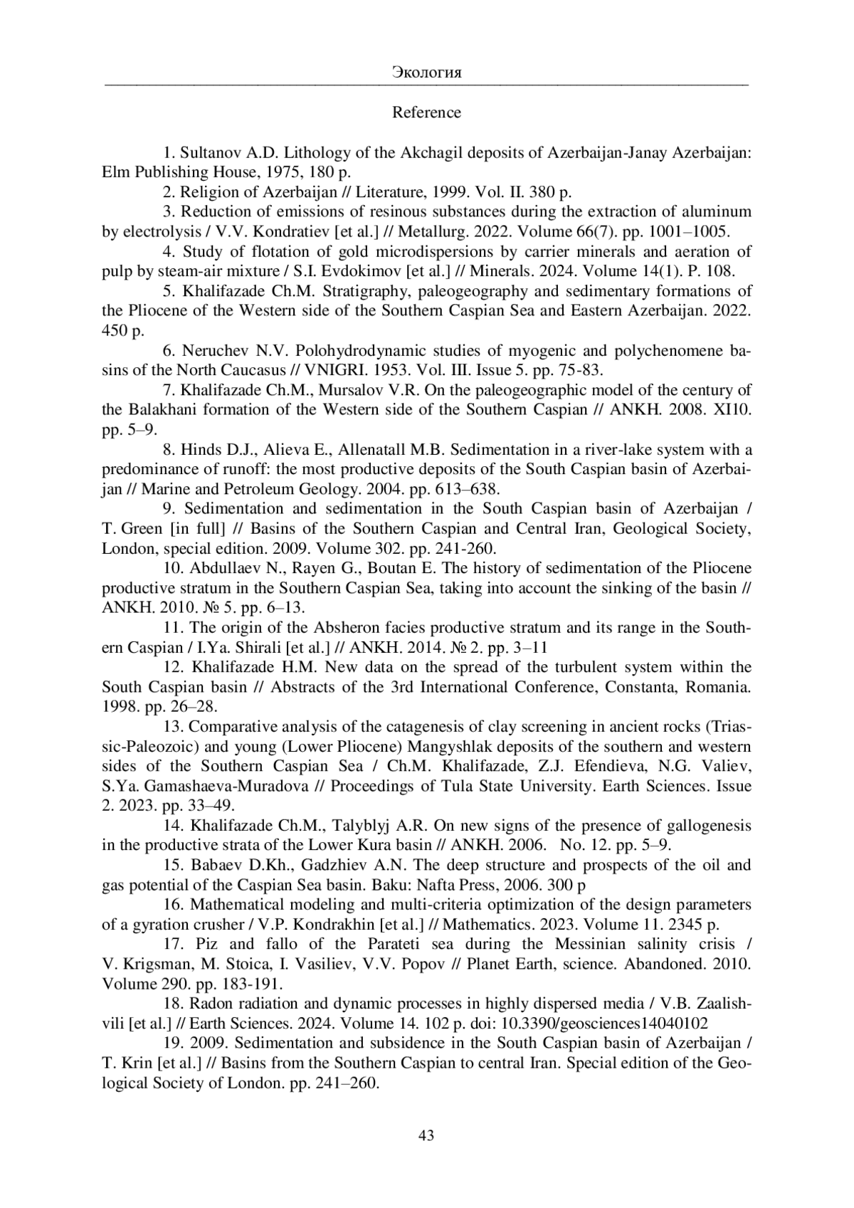 19. 2009. Sedimentation and subsidence in the South Caspian basin Azerbaijan / T. Qreen [et all] // South Caspian to central iran basins. Geological society, London special publication. P. 241-260.