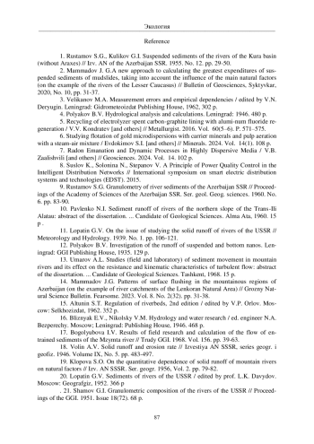 9. Рустамов С.Г. Гранулометрия речных наносов Азербайджанской ССР // Известия АН Азерб. ССР. Сер. геол. геог. наук. 1960. № 6. С. 83-90.