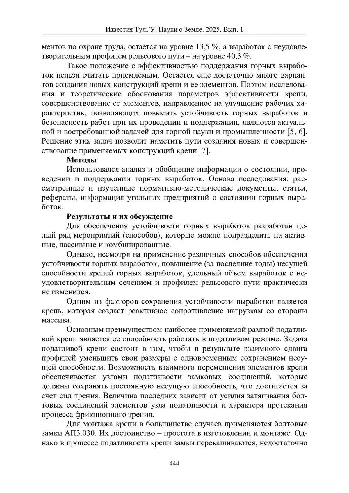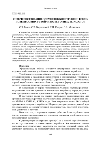 С переходом ведения горных работ на горизонты 1000 м и более значительно усложняются горные работы, выработки подвергаются значительным деформациям. В некоторых выработках смещения пород кровли на контуре за весь срок службы достигает 1000-1500 мм, а почвы - 3000 мм [1]. Анализ применяемых типов крепей и состояния горных выработок показал, что существующие конструкции крепи не в полной мере обеспечивают рабочее состояние горных выработок. Поэтому одной из основных задач совершенствования податливой крепи является улучшение способов соединения ее элементов. В связи с этим должны быть созданы крепи с повышенной несущей способностью, не требующие ремонта и обладающие достаточной податливостью (с тем, чтобы их можно было извлекать и повторно использовать) [2].