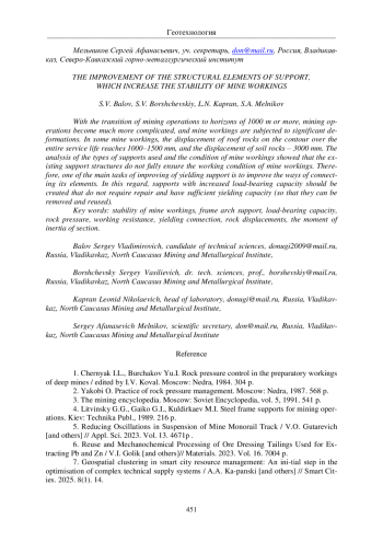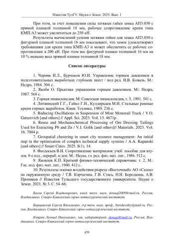 1. Черняк И.Л., Бурчаков Ю.И. Управление горным давлением в подготовительных выработках глубоких шахт / под ред. И.В. Коваль. М.: Недра, 1984. 304 с.