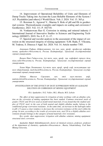 5. Experimental study on the feasibility of reducing coal dust by alkaline solution / H.Y. Guo [et al.] // Bulgarian Chemical Communications. 2018. V. 50, No. 1. P. 171-175.