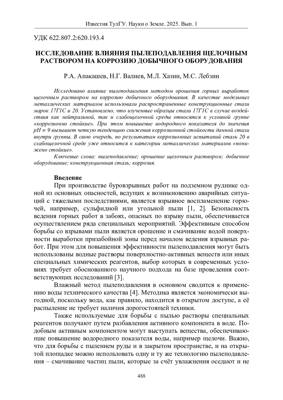8. Апакашев Р.А., Хазин М.Л. Влияние параметров структуры материала на коррозионную стойкость нефтегазопромыслового оборудования // Недропользование. 2023. № 3. С. 133-140.