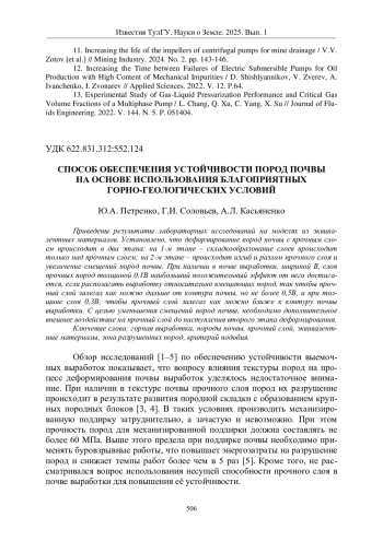 Рассматривается проблема обеспечения устойчивости и надежности работы подземных дегазационных скважин. Актуальность исследования обусловлена усложнением горно-геологических условий добычи угля, в частности, увеличением глубины разработки и газоносности пластов. Авторы подчеркивают недостаточность существующих нормативных документов в части обеспечения устойчивости скважин, указывая на преждевременный выход из строя до 30% дегазационных скважин. Целью работы является развитие научных основ, обеспечивающих долговечность и надежность скважин. Рассматриваются деформационные процессы в углепородном массиве, вмещающем скважины, учитывается нелинейность аэрогазового режима в подрабатываемых скважинах. Анализируются факторы, влияющие на устойчивость скважин, включая горное давление, деформации пород и процессы зональной дезинтеграции массива. Для обеспечения надежности скважин предлагается комплекс мероприятий, направленных на повышение их устойчивости, в частности, совершенствование крепления обсадных труб.