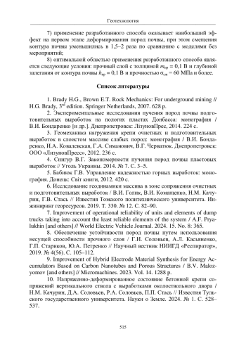 1. Brady H.G., Brown E.T. Rock Mechanics: For underground mining // H.G. Brady, 3rd edition. Springer Netherlands, 2007. 628 p.