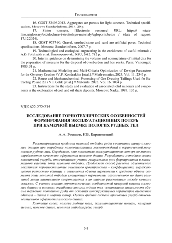 12. Рожков А.А. Систематизация способов снижения потерь рудной мелочи при подземной разработке месторождений // Проблемы недропользования. 2021. № 3(30). С. 16-28. EDN: LPADUR