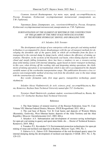 3. Селюков А.В. Обоснование и разработка ресурсосберегающих технологий открытой угледобычи на карьерных и отработанных шахтных полях: дис.. д-ра техн. наук. Кемерово, 2019. 308 с. EDN: HGAIZK