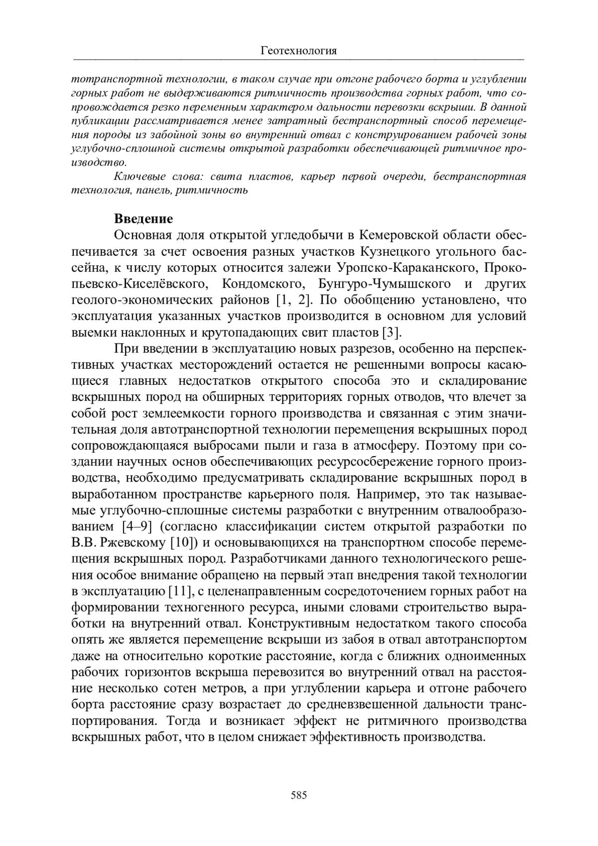 Основная доля открытой угледобычи в Кемеровской области обеспечивается за счет освоения разных участков Кузнецкого угольного бассейна, к числу которых относится залежи Уропско-Караканского, Прокопьевско-Киселёвского, Кондомского, Бунгуро-Чумышского и других геолого-экономических районов [1, 2]. По обобщению установлено, что эксплуатация указанных участков производится в основном для условий выемки наклонных и крутопадающих свит пластов [3].