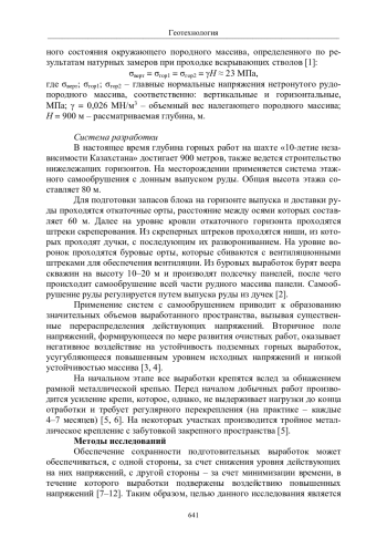 Тенденция к увеличению глубины ведения горных работ неизбежно связана с проблемой возрастания величины напряжений, действующих в массиве горных пород, что может приводить к нарушению его устойчивости и повреждению горных выработок.