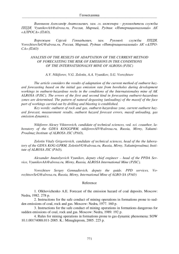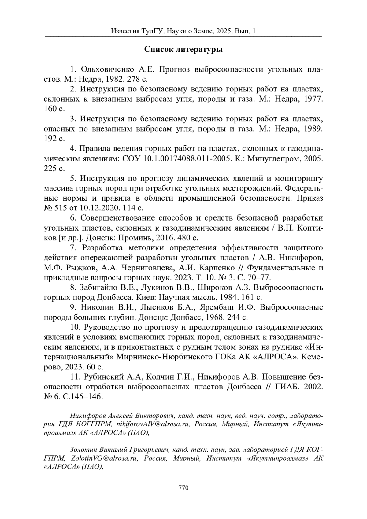 11. Рубинский А.А, Колчин Г.И., Никифоров А.В. Повышение безопасности отработки выбросоопасных пластов Донбасса // ГИАБ. 2002. № 6. С.145-146.