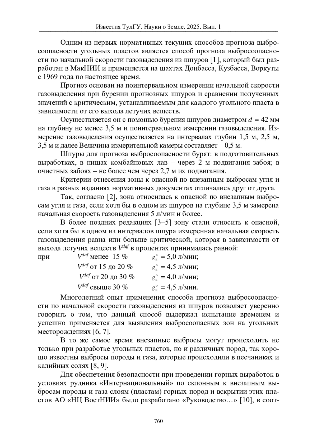 10. Руководство по прогнозу и предотвращению газодинамических явлений в условиях вмещающих горных пород, склонных к газодинамическим явлениям, и в приконтактных с рудным телом зонах на руднике “Интернациональный” Мирнинско-Нюрбинского ГОКа АК “АЛРОСА”. Кемерово, 2023. 60 с.
