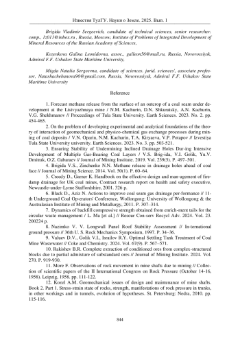 8. Nazimko V. V. Longwall Panel Roof Stability Assessment // International ground pressure // 36th U. S. Rock Mechanics Symposium, 1997. P. 34-36.