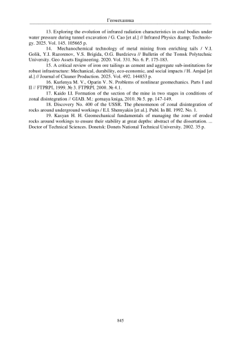 13. Exploring the evolution of infrared radiation characteristics in coal bodies under water pressure during tunnel excavation / G. Cao [et al.] // Infrared Physics & Technology. 2025. Vol. 145. 105665 p. EDN: BGSCEZ