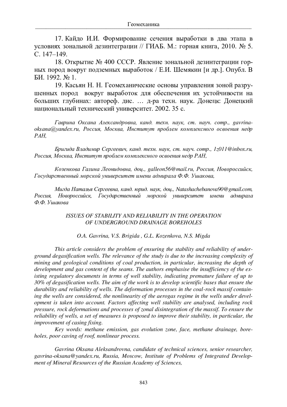 17. Кайдо И.И. Формирование сечения выработки в два этапа в условиях зональной дезинтеграции // ГИАБ. М.: горная книга, 2010. № 5. С. 147-149.