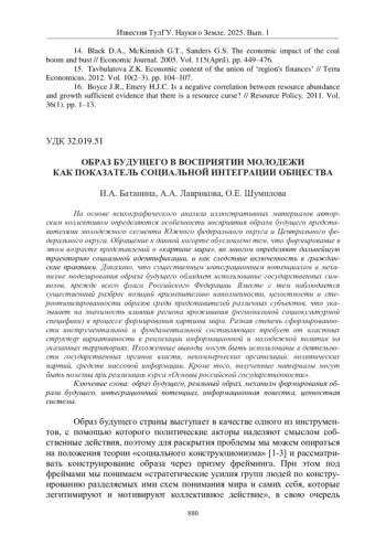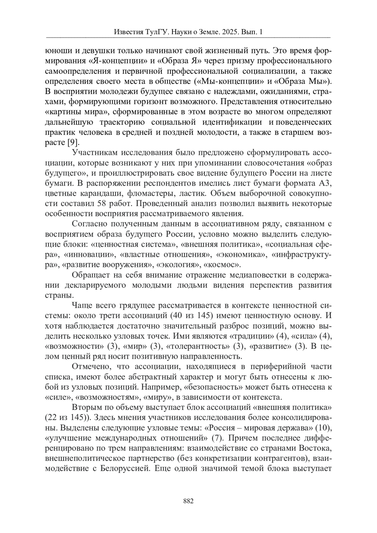 9. Шайхисламов Р.Б., Асадуллина Г.Р., Садретдинова Э.В. Образ России настоящего и будущего в представлениях юношества: смыслогемы в условиях новых вызовов и возможностей // Society and Security Insights. 2023. Т. 6, № 1. С. 13-31. EDN: RYWEOE